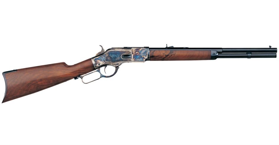 The Winchester 1873 Rifle was called the “rifle that won the West.” This piece of history is available in 7 distinctive models, including the Uberti 1873 Carbine and the Uberti 1873 Special Sporting Rifle, and others. When the gun was first offered, it was chambered in the powerful new .44-.40 cartridge. The .44 caliber bullet was propelled by 40 grains of black powder. The success of the 1873 Rifle was assured when Colt quickly offered its Peacemaker in the same caliber. Then a cowboy needed only 1 cartridge belt for a lever-action rifle plus his 6-shooter.